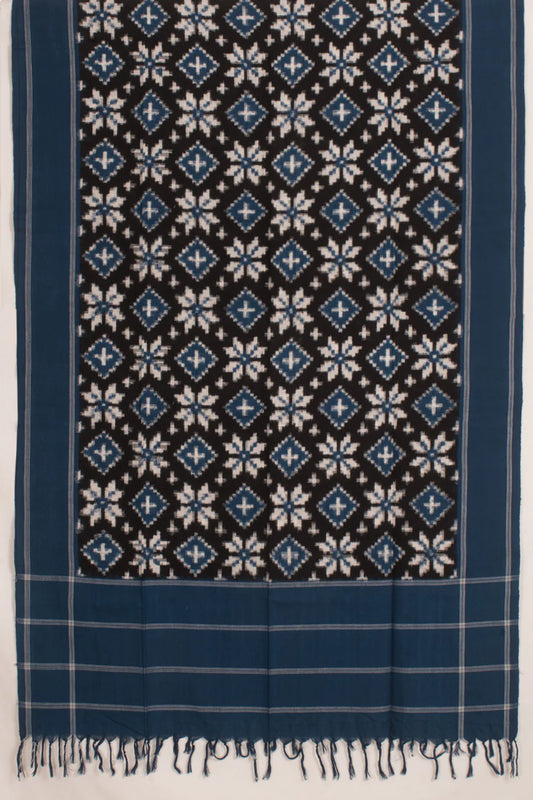 Krasha- Black Handwoven Cotton Sambalpuri Ikat Dupatta