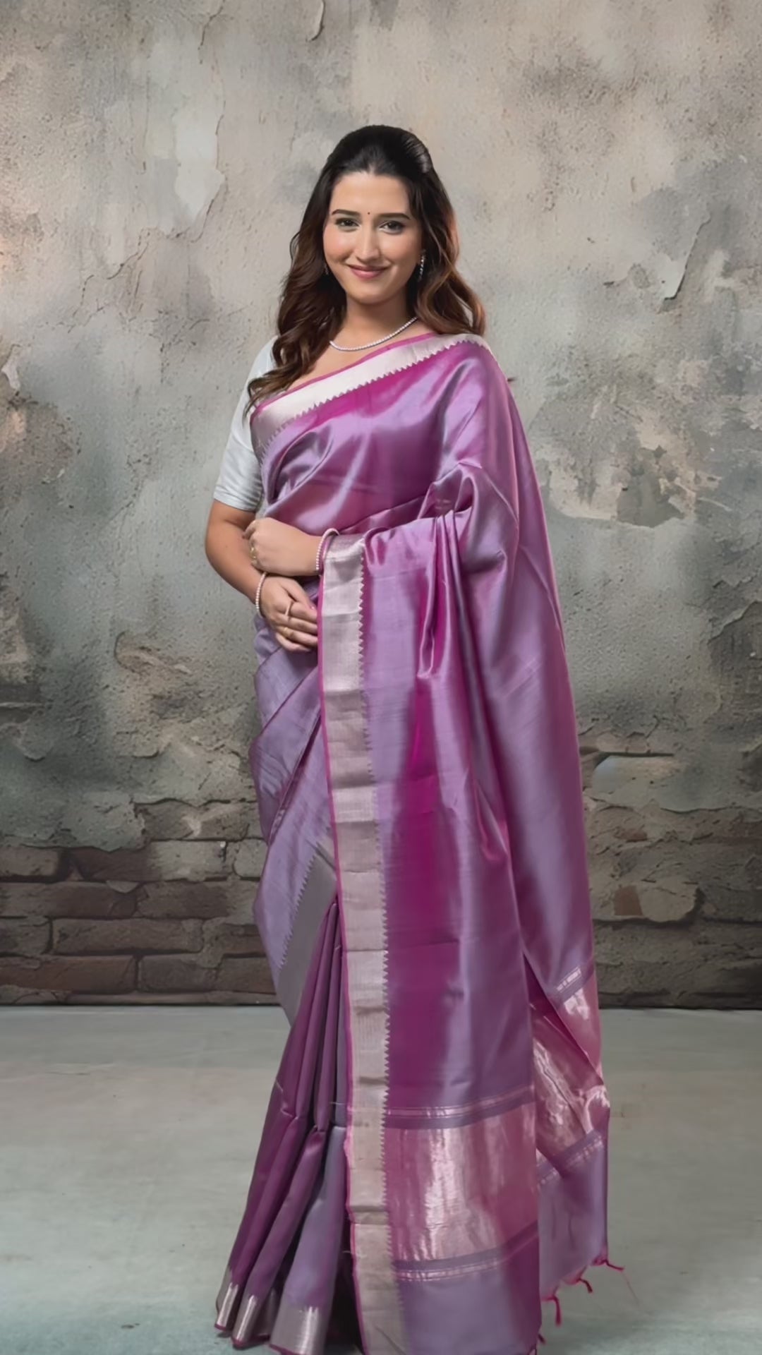BHADRA - PINKISH PURPLE PLAIN WITH SILVER ZARI BORDER SILK SAREE.