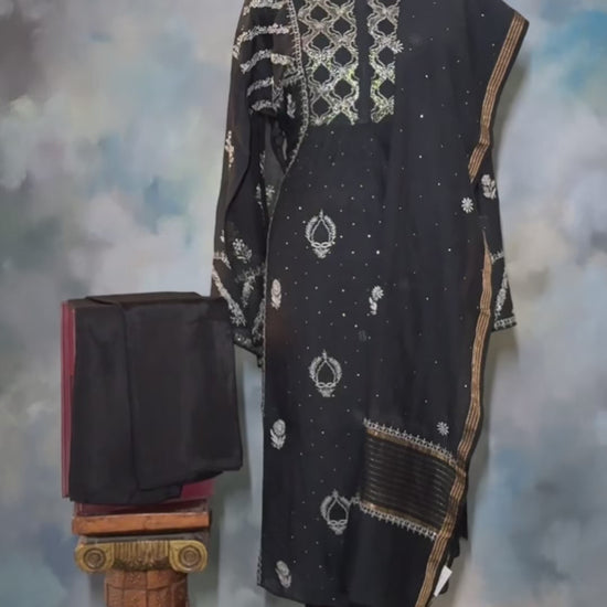 Elegant Hand-Embroidered Lucknowi Suit in Classic Black