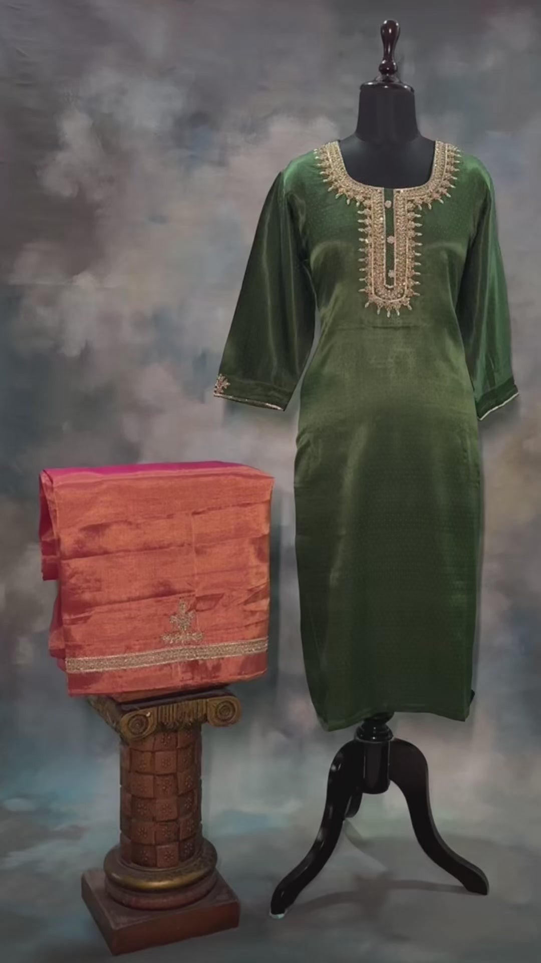 Drape yourself in refined luxury with this elegant emerald, green Dana Mashroo silk suit set, designed for graceful occasions and traditional gatherings.