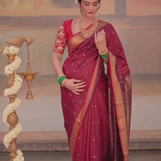 Eevara Burgundy Maroon Kancheevaram Heirloom Silk Saree
