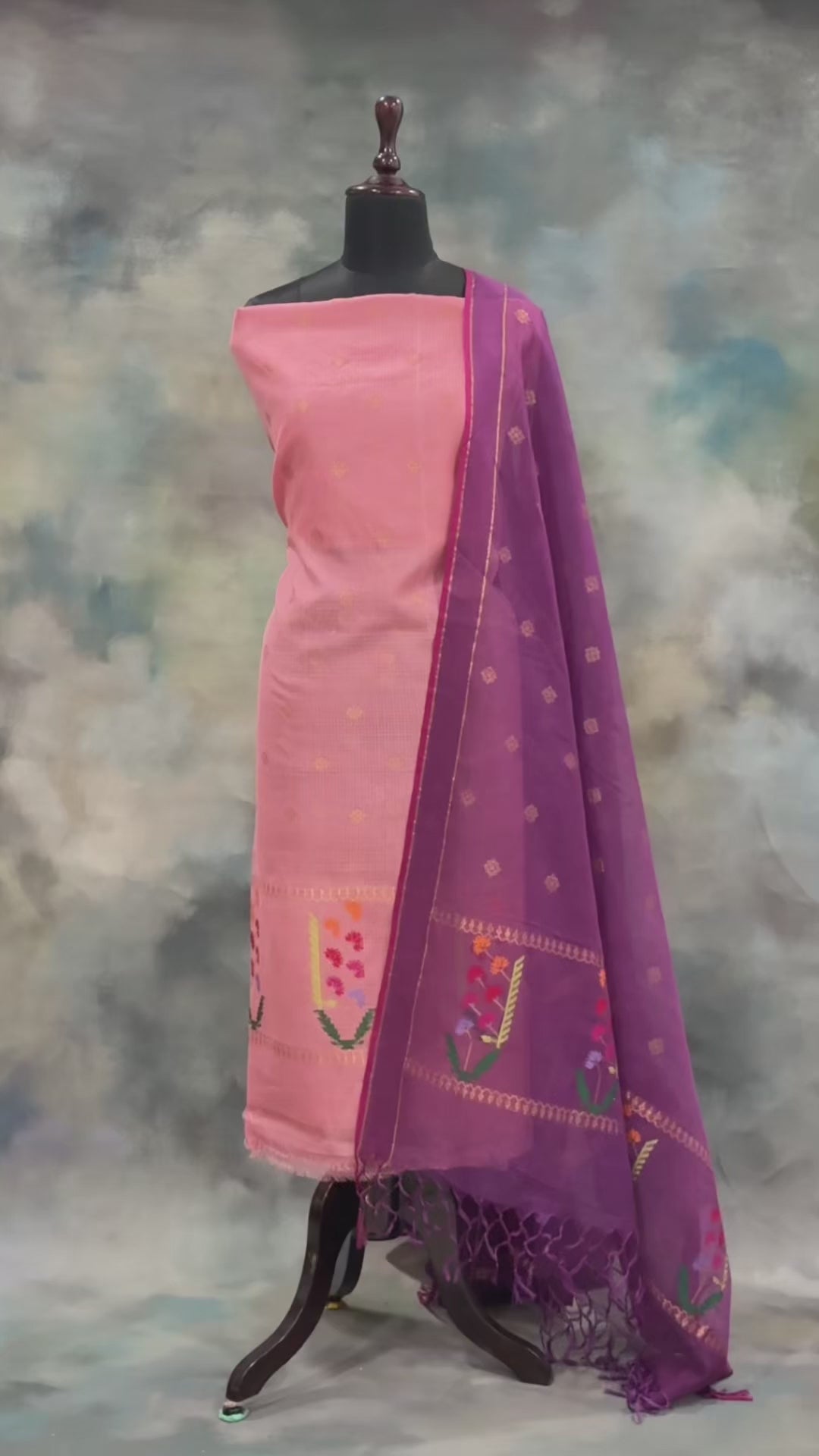Lightweight, breathable, and charmingly vibrant, this suit set is perfect for festive gatherings, poojas, and elegant day events.